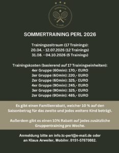 Ab sofort sind Anmeldungen für das Sommertraining online möglich. Die Anmeldung erfolgt künftig über den Tennisclub. Die Trainingsgebühren werden nach Anmeldung per Lastschrift eingezogen.DasAnmeldeformular ist ebenfalls online verfügbar.